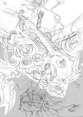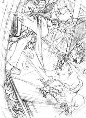 最初3枚目のラフにあげていたものから敵と構図のインパクトからしてラストだろうと